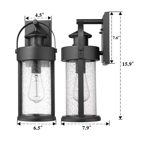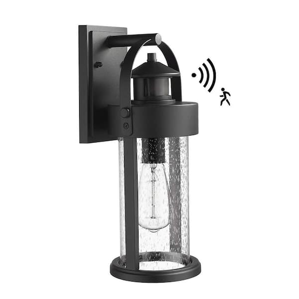 Black Motion Sensing Dusk to Dawn Weather Resistant Outdoor Hardwired Wall Lantern Scone with Seeded Glass Shade
