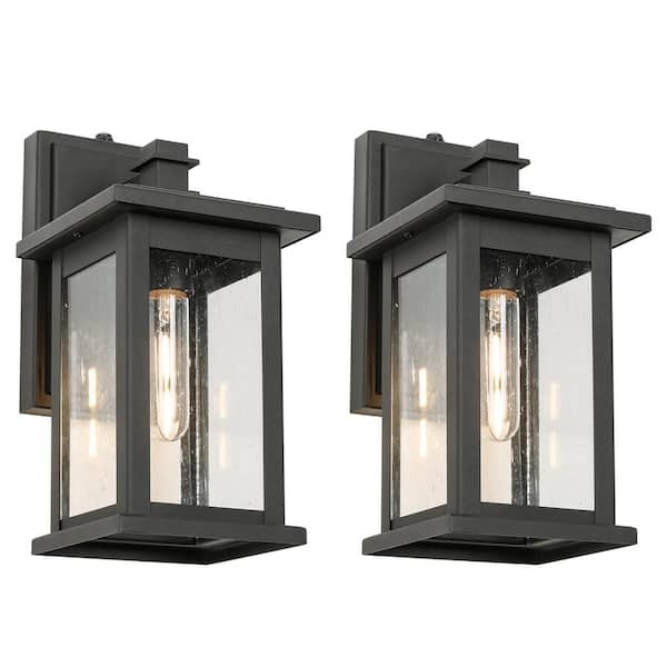 Black Not Motion Sensing Dusk to Dawn Outdoor Hardwired Wall Lantern Sconce with No Bulbs Included (2-Pack)