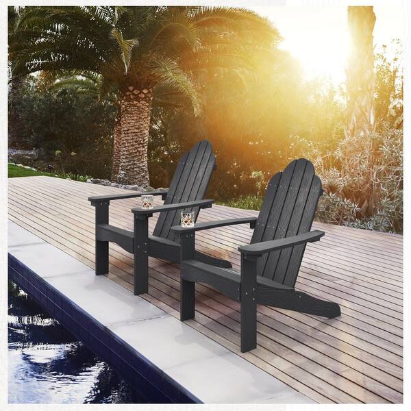 Black Outdoor Weather Resistant Wood Adirondack Chairs (Set of 1)