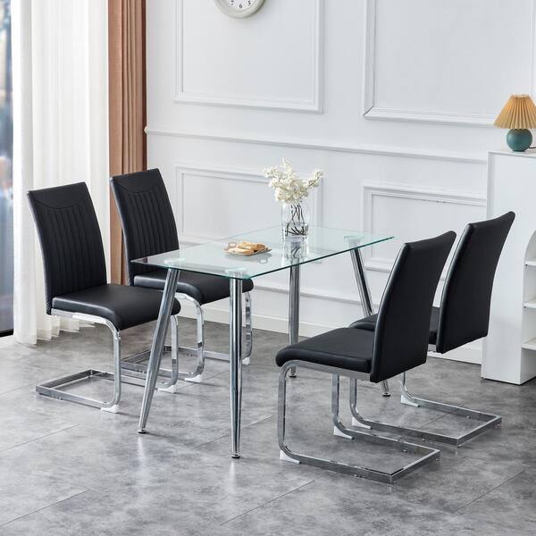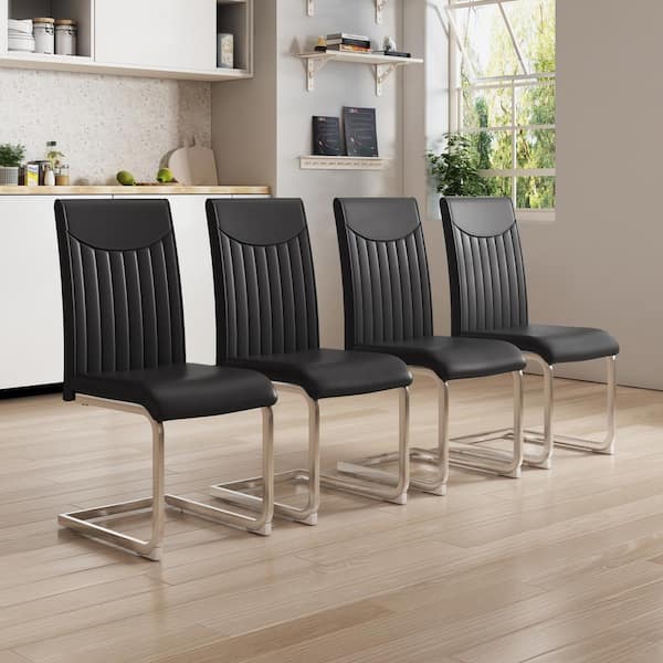 Black PU Leather Upholstered Dining Chair Modern Accent Chair Side Chair with C Shape Plating Leg (Set of 4)