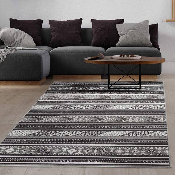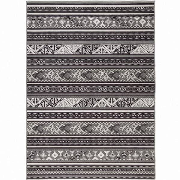 Black Polypropylene 6 ft. 7 in. x 9 ft. Geometric Indoor Area Rug