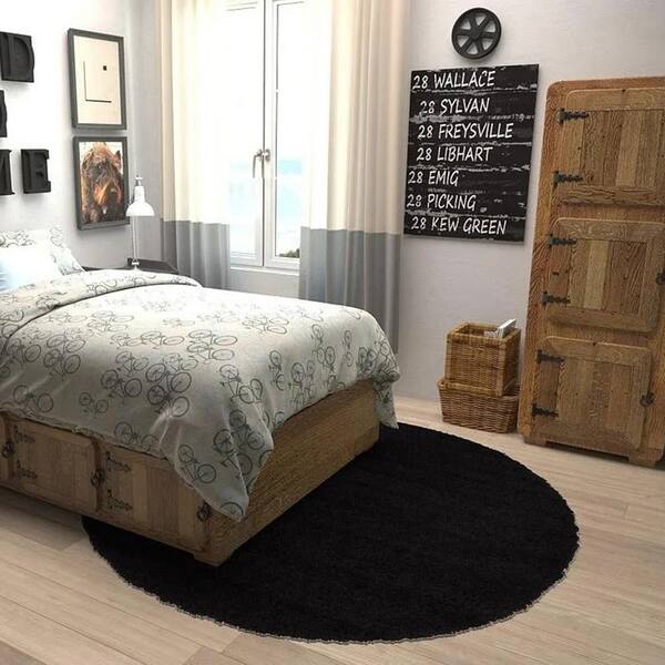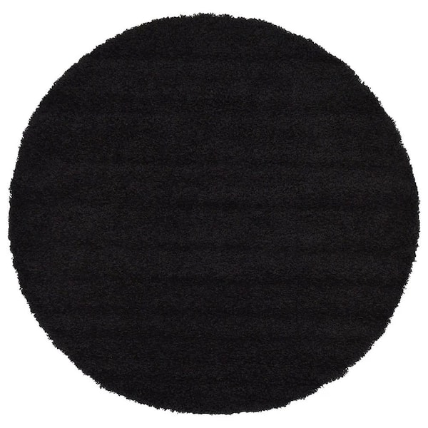 Black Polypropylene 6 ft. x 6 ft. Solid Color Indoor Round Area Rug