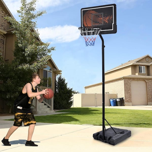 Black Portable Basketball Hoop and Goal Outdoor Basketball System with 8.5' - 10' Height Adjustment in 35 in. Backboard