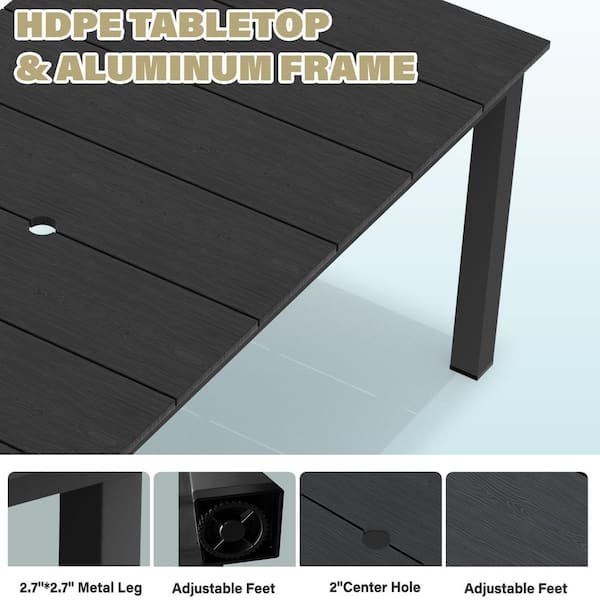 Black Rectangular HDPE Outdoor Dining Table with Extension
