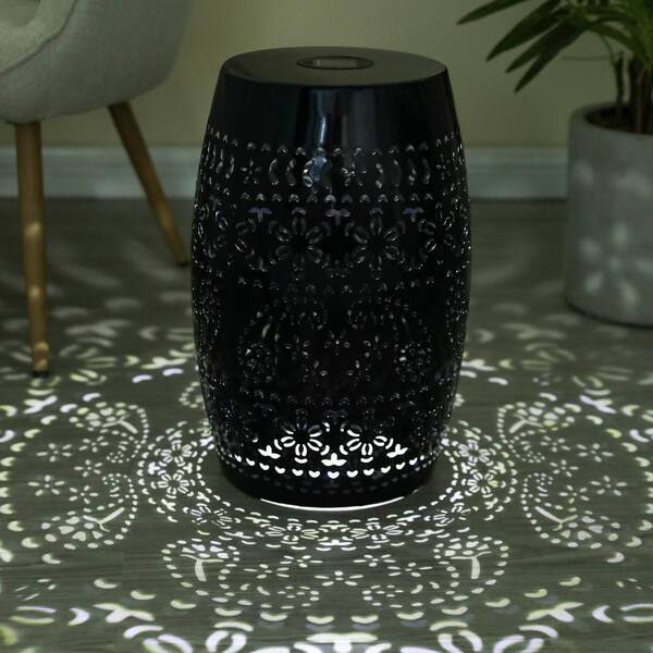 Black Round Outdoor Side Table Solar End Table with Solar Powered Light