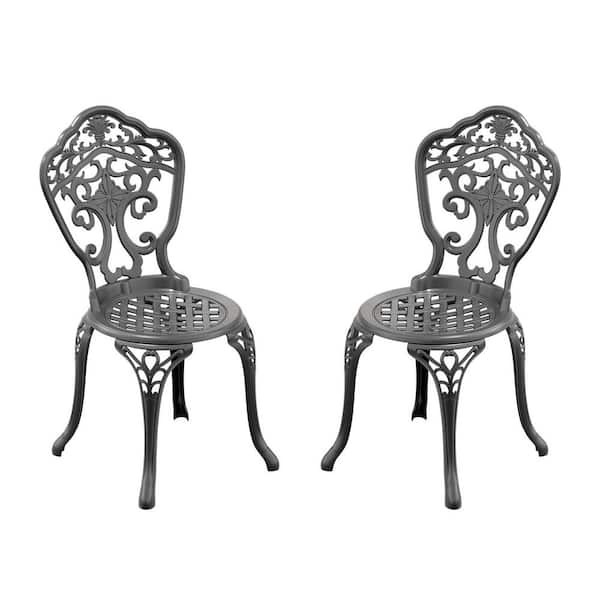 Black Rust-Resistant Cast Aluminum Patio Dining Chair All Weather Bistro Chairs Outdoor Chairs (Set of 2)