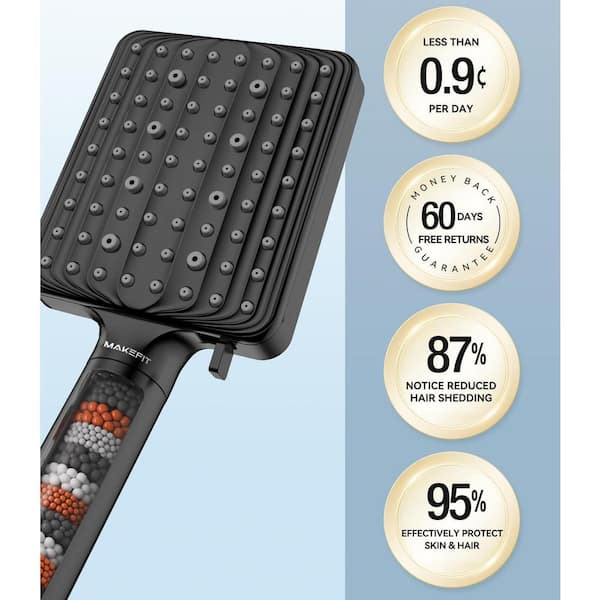 Black Shower Head Water Filtration System 6 Modes High-Pressure with Filter Mineral Beads Handheld Showerhead Set