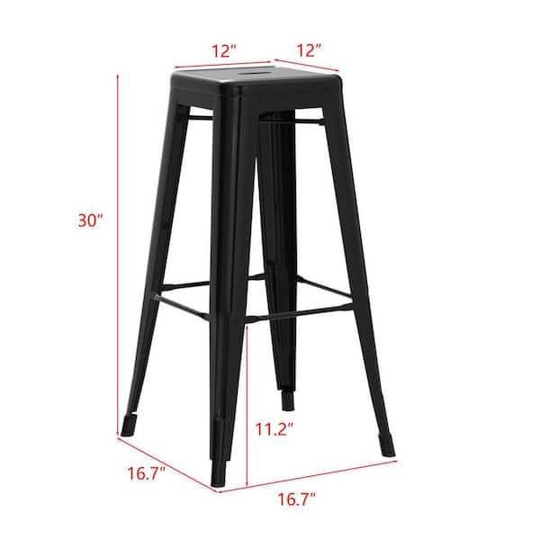 Black Stackable Metal Outdoor Bar Stool (4-Pack)
