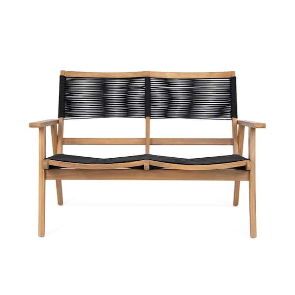 Black Stacking Outdoor 2 seat Chairs Patio Rattan Bench Wooden Frame Conversation Sectional for Yard Garden Poolside