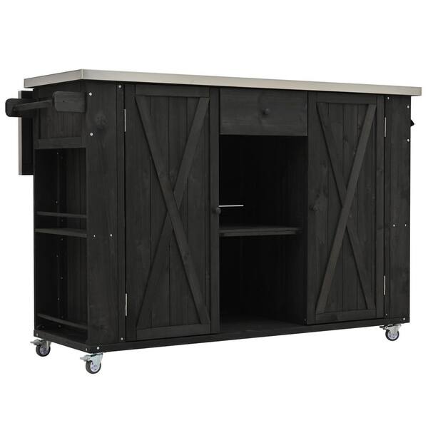 Black Stainless Steel Top 52.25 in W Kitchen Island with Towel and Spice Racks and a Bottle Opener for Outdoor
