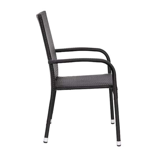 Black Wicker/Rattan Outdoor Dining Chair in Black (Set of 2)