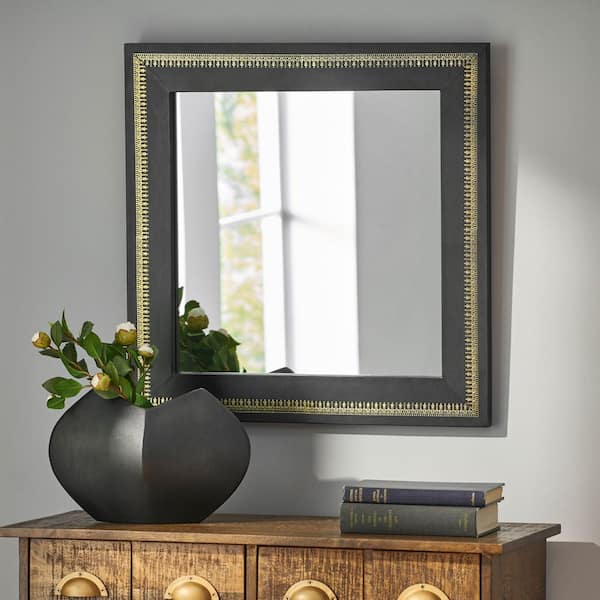 Black and Gold 23 in W x 23 in. H Mid Century Square MDF Framed Mirror Bathroom Mirror