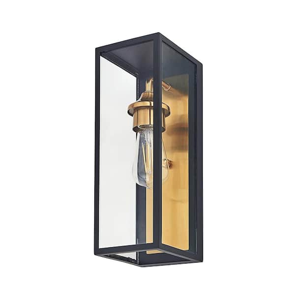 Black and Gold Outdoor Decor 1-Light LED Lantern Wall Sconce