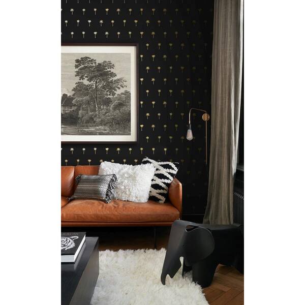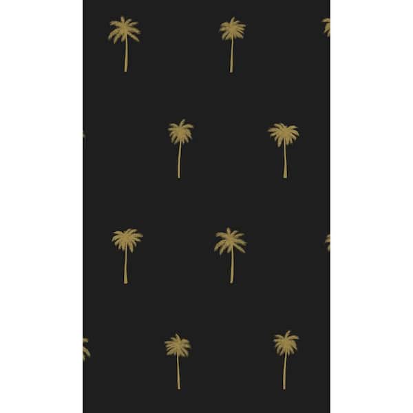 Black and Gold Paradise Palm Trees Print Non Woven Non-Pasted Textured Wallpaper 57 sq. ft.
