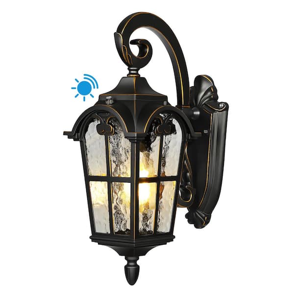 Black and Gold Trim Dusk to Dawn Outdoor Hardwired Wall Light with No Bulbs Included
