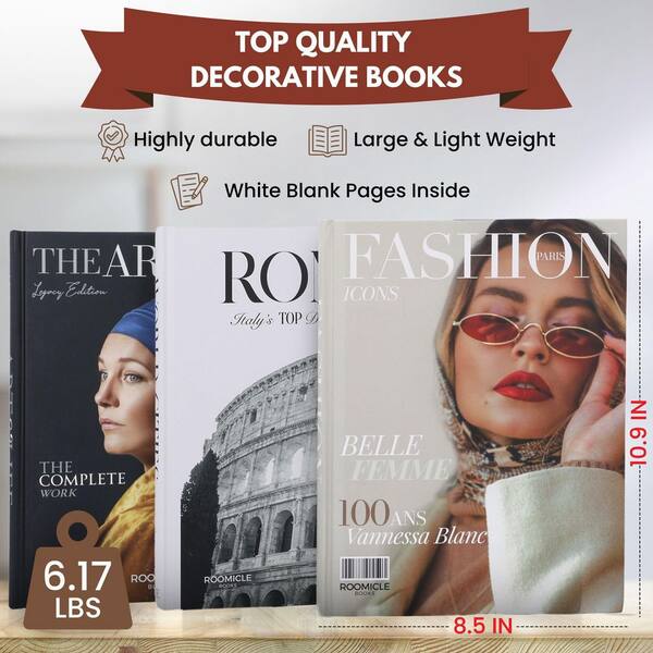 Black and White Elegant Decorative Books Set of 3 Faux Books for Decoration