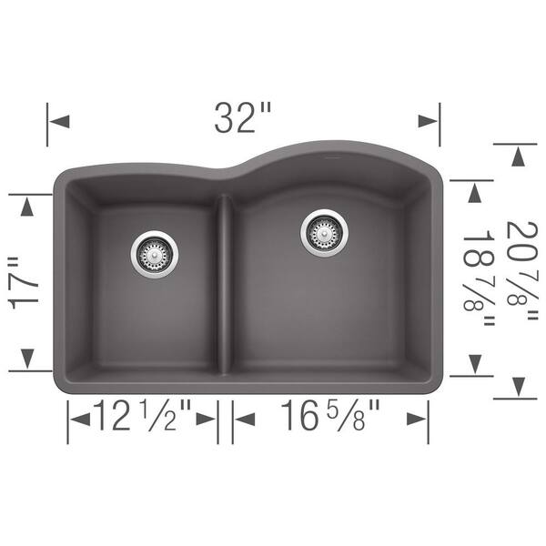 DIAMOND Silgranit 32 in. Undermount 40/60 Double Bowl Cinder Granite Composite Kitchen Sink with Low Divide