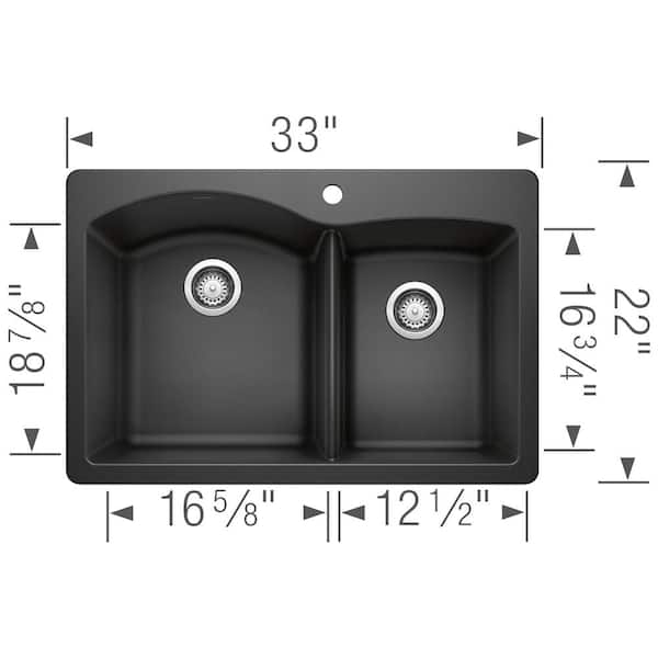 Diamond 33 in. Drop-in/Undermount Double Bowl Anthracite Granite Composite Kitchen Sink Kit with Accessories