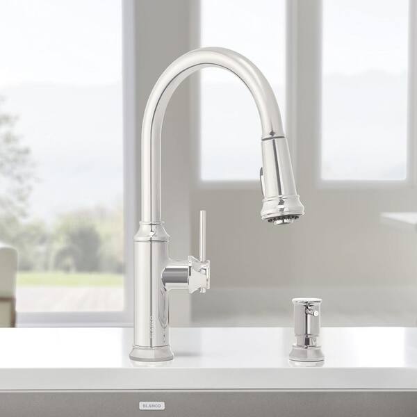 EMPRESSA Single Handle Gooseneck Pull-Down Sprayer Kitchen Faucet in Polished Nickel