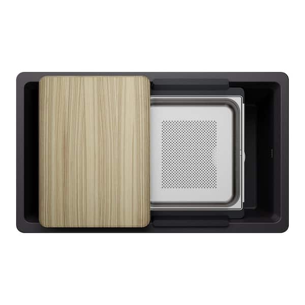 Inteos 33 in. Undermount Single Bowl Black Granite Composite Workstation Kitchen Sink With Colander and Cutting Board