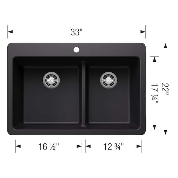 Liven SILGRANIT 33 in. Drop-In/Undermount Double Bowl Granite Composite Kitchen Sink in Coal Black