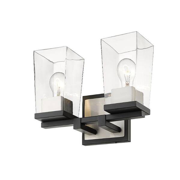 Bleeker Street 14 in. 2-Light Matte Black and Brushed Nickel Vanity Light with Clear Glass