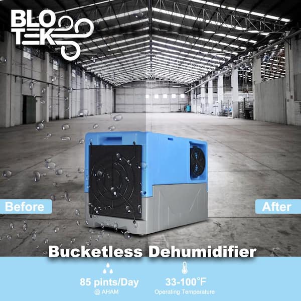 85 pints/day Bucketless Dehumidifier Blue with 16ft Drain hose