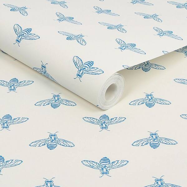 Block Print Bee Blue Haze Matte Non Woven Removable Paste the Wall Wallpaper