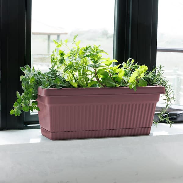 Amelia 17.75 in. L x 7.75 in. W x 6.5 in. H 8 qt. Fluted Rectangular Rose Plastic Indoor/Outdoor Window Box Planter