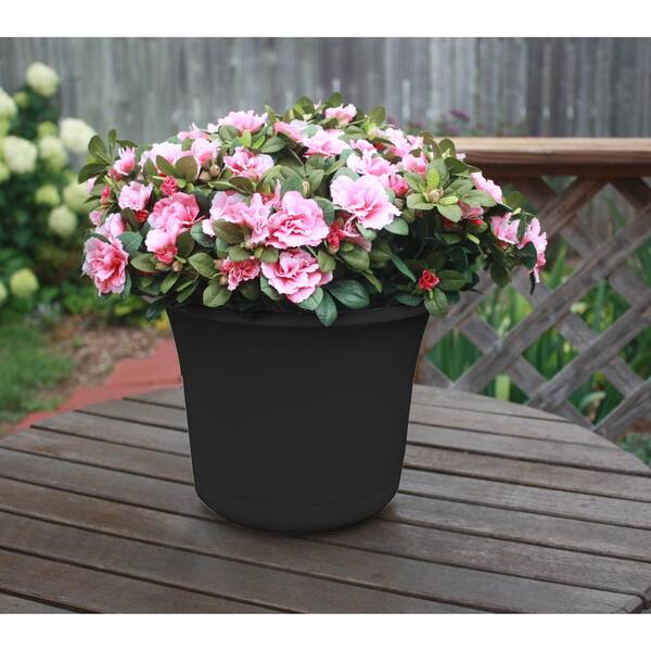 Expressions 10 in. x 9.25 in. Black Plastic Planter and Matching Saucer