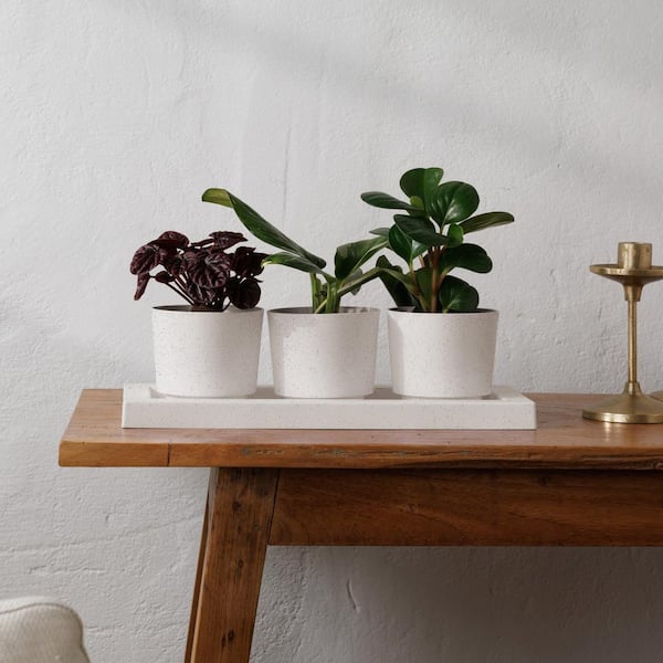 Trio Flight Small 14 in. Vanilla Bean 3 Plastic Planter Pots with Saucer Tray