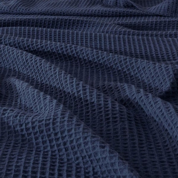 Blue 100% Cotton King Lightweight Waffle Weave Blanket