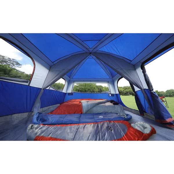 Blue 12-Person Camping Tents Easy Set Up 3 Room Family Tent with 6 Windows Double Layer Carry Bag for Camping Hiking