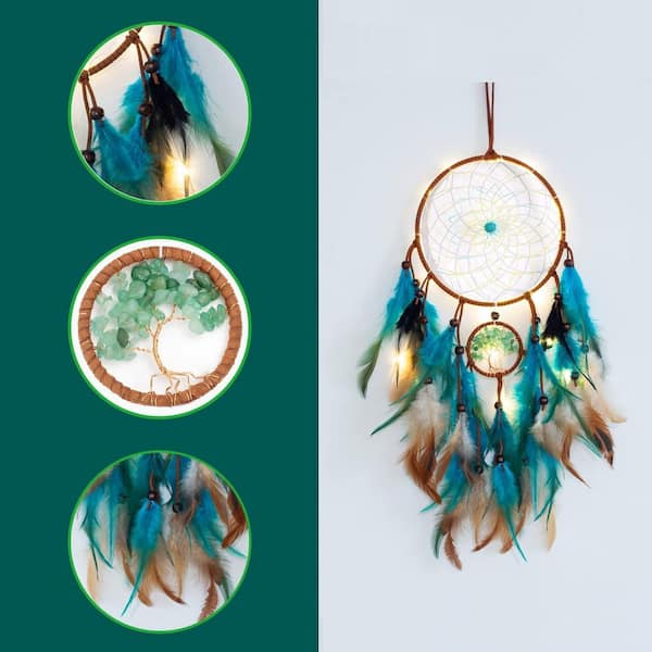 Blue 12 in. x 22 in. Handmade LED Dream Catcher with Feathers