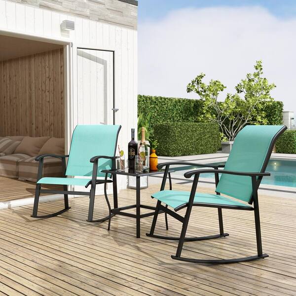 Blue 3-Piece Metal Frame Textilene Patio Conversation Set with Glass Table, For Outdoor, Pool, Garden