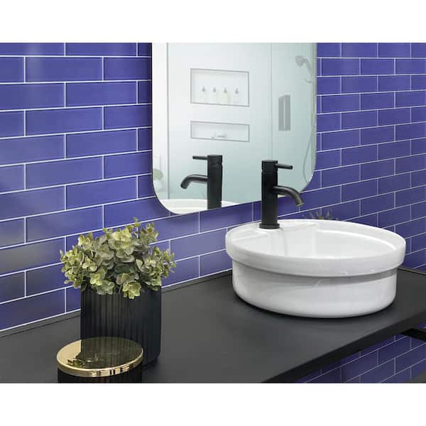 Blue 3 in. x 12 in. Matte Glass Mosaic Tile Sample (0.25 sq. ft./Piece)