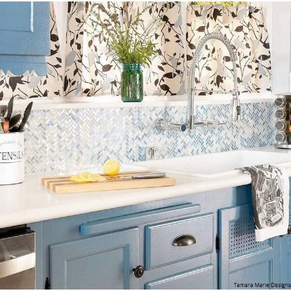 Blue 4 in. x 5 in. Herringbone Polished Glass Mosaic Floor and Wall Tile Sample (0.13 sq. ft./Piece)