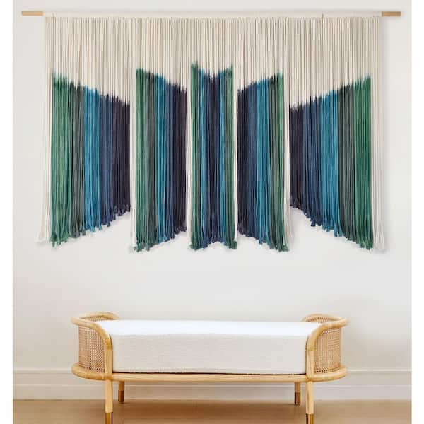 Blue 59 in. x 37 in. Cotton Dip-Dye Bohemian Tapestry