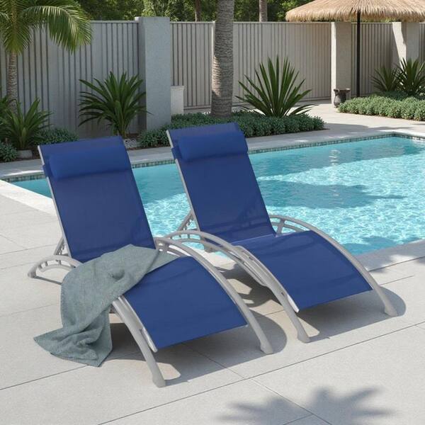 Blue Aluminium Outdoor Stacking Lounge Chair, Pool Recliner Set of 2 with Adjustable Backrest