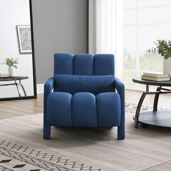 Blue Comfy Linen Fabric Accent Chair Modern Upholstered Armchair with Pillow Modern Single Sofa for Living room, Bedroom