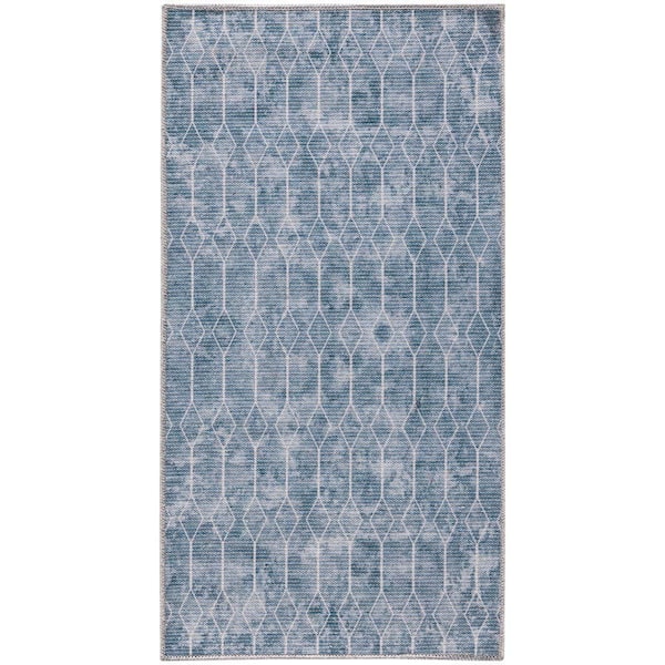 Blue Grey doormat 2 ft. x 4 ft. Geometric Contemporary Machine Washable Series 1 Area Rug