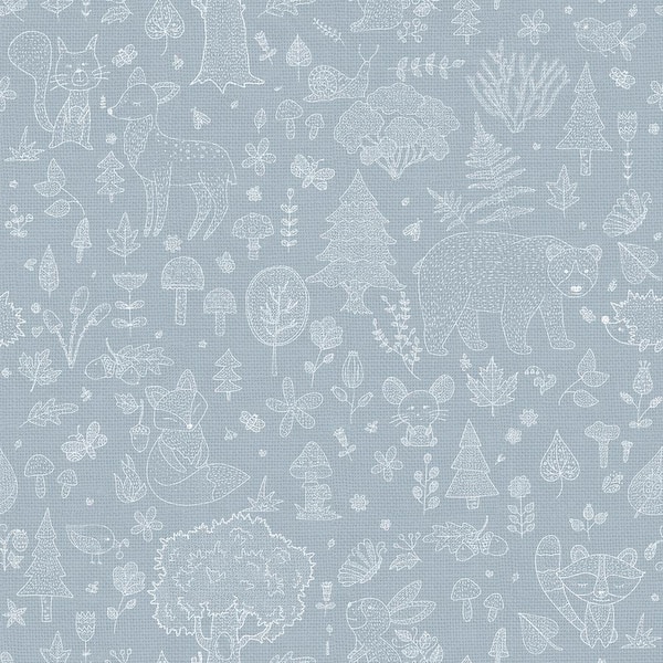 Blue Little Explorers 2 Forest Animals Matte Finish Non-Pasted Non-Woven Wallpaper Sample