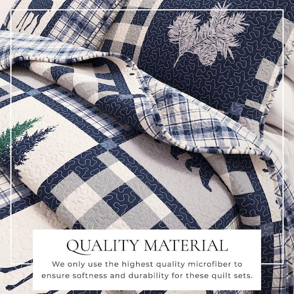 Blue Lodge Patchwork Full/Queen Microfiber 3-Piece Quilt Set Bedspread