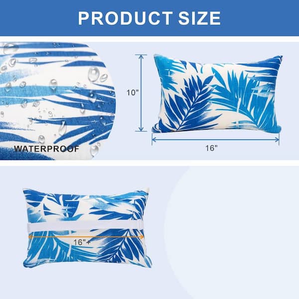 Blue Outdoor Lumbar Pillow (Set of 4) Waterproof Lumbar Pillows with Insert and Adjustable Elastic Strap