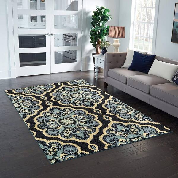 Blue Polyester 5 ft. x 7 ft. Floral Indoor Area Rug