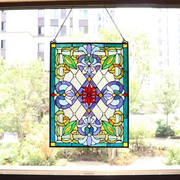 Blue Rectangular Shape Stained Glass Art Glass Window