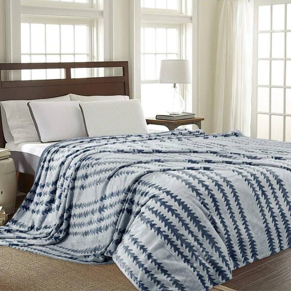 Blue Stripe Polyester Queen Quilted Blanket 60 in. x 80 in.