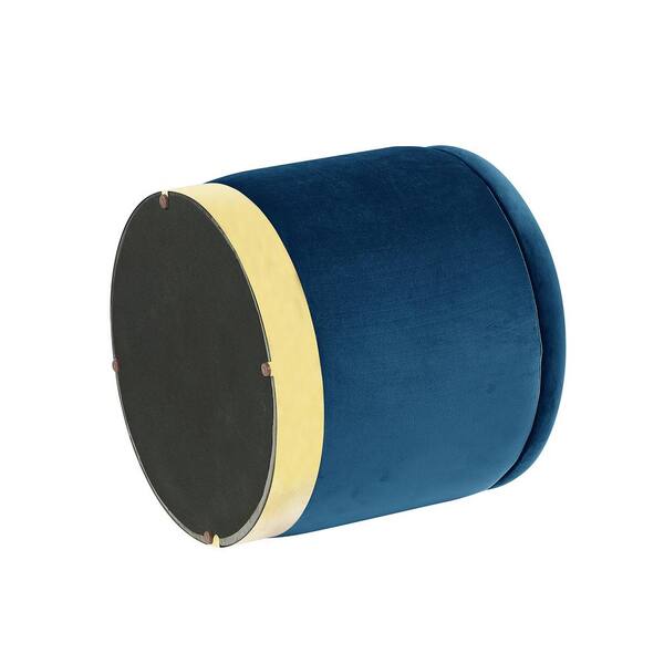 Blue Velvet Ottoman with Storage Round Footrest for Entryway, Bedroom 16.5 in. D x 16.5 in. W x 17 in. H