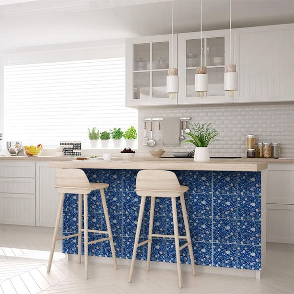 Blue, White, Green T5 7 in. x 7 in. Vinyl Peel and Stick Tile (24 Tiles, 8.17 sq. ft./pack)