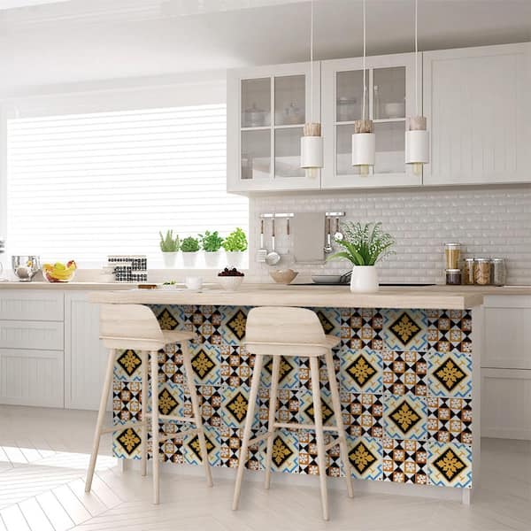 Blue, Yellow, Black V32 7 in. x 7 in. Vinyl Peel and Stick Tile (24 Tiles, 8.17 sq. ft./pack)